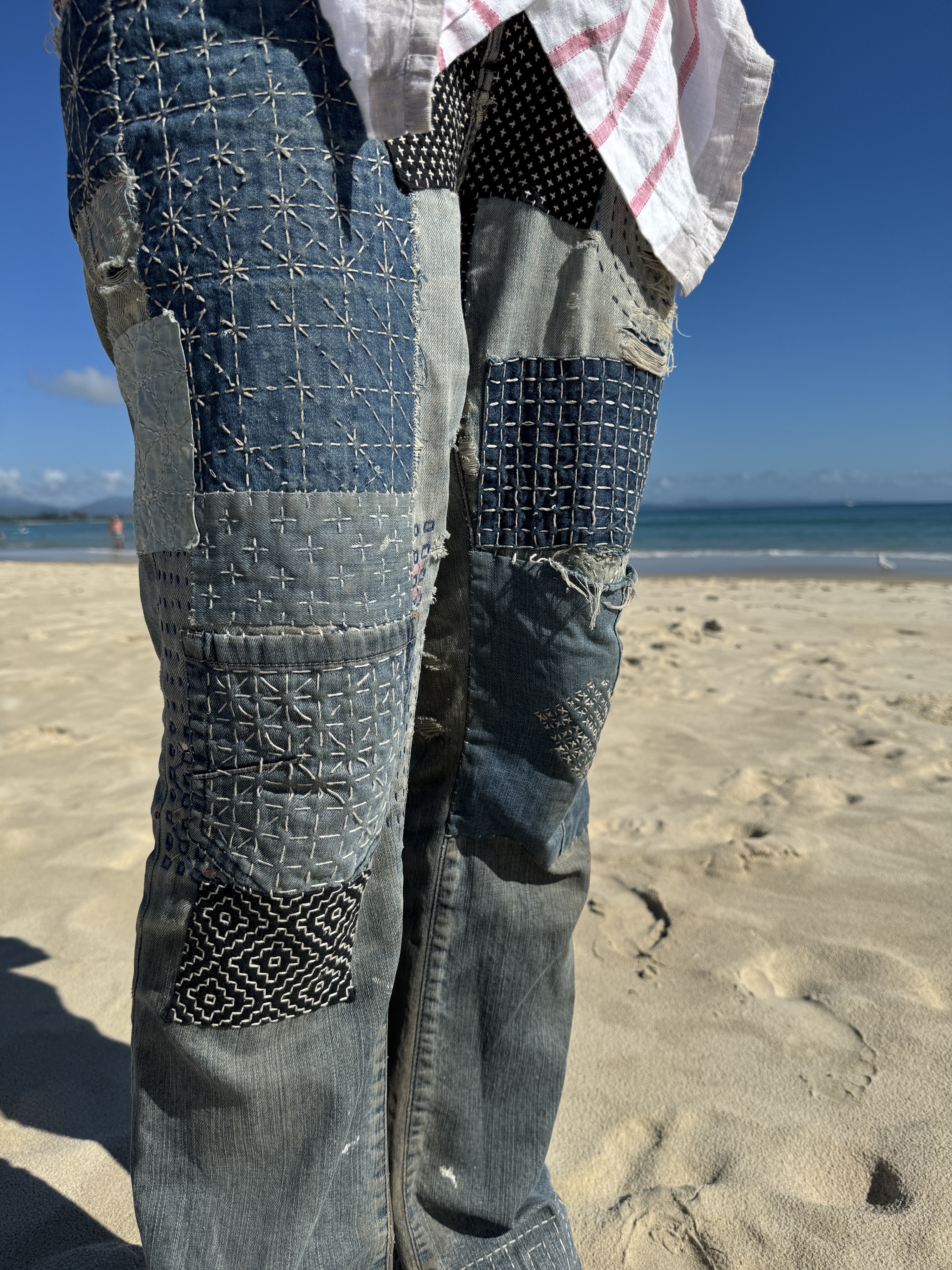My 'studio jeans,' after many years and over 30 mends (with more to come)!