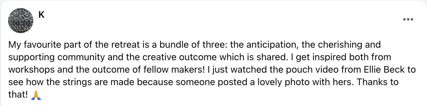 I hope you’ll experience some of this for yourself at our next retreat, coming up from 4-8 May 2026. This is going to be our 10th event, and we’ll have 40 artists sharing their skills - a long way from the 16 we started out with back in 2021! It’s a sense of community, curiosity, and creativity that you have to see to understand, so I hope you’ll register for free and start making some joy for yourself.