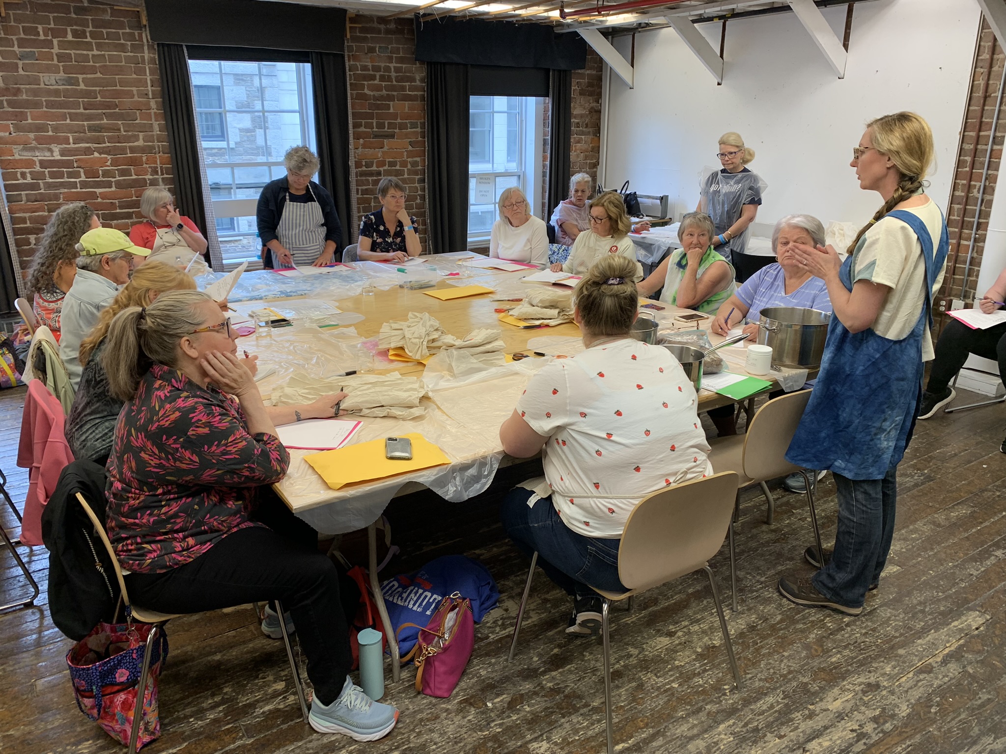 Knowing that we feel better when we create, and that we feel better when we gather, combining the two is a bit of a know-brainer. Just having a number of perspectives in a shared space, whether virtual or physical, means that when a problem comes up, there are automatically a number of ways to view it. Plus, as we speak to each other and say our ideas out loud, we get 1) the power of communal brainstorming, and 2) we feel even more committed to our projects, because we've discussed them with others. Basically, creating together invites participation, which often feels restorative and fulfilling.